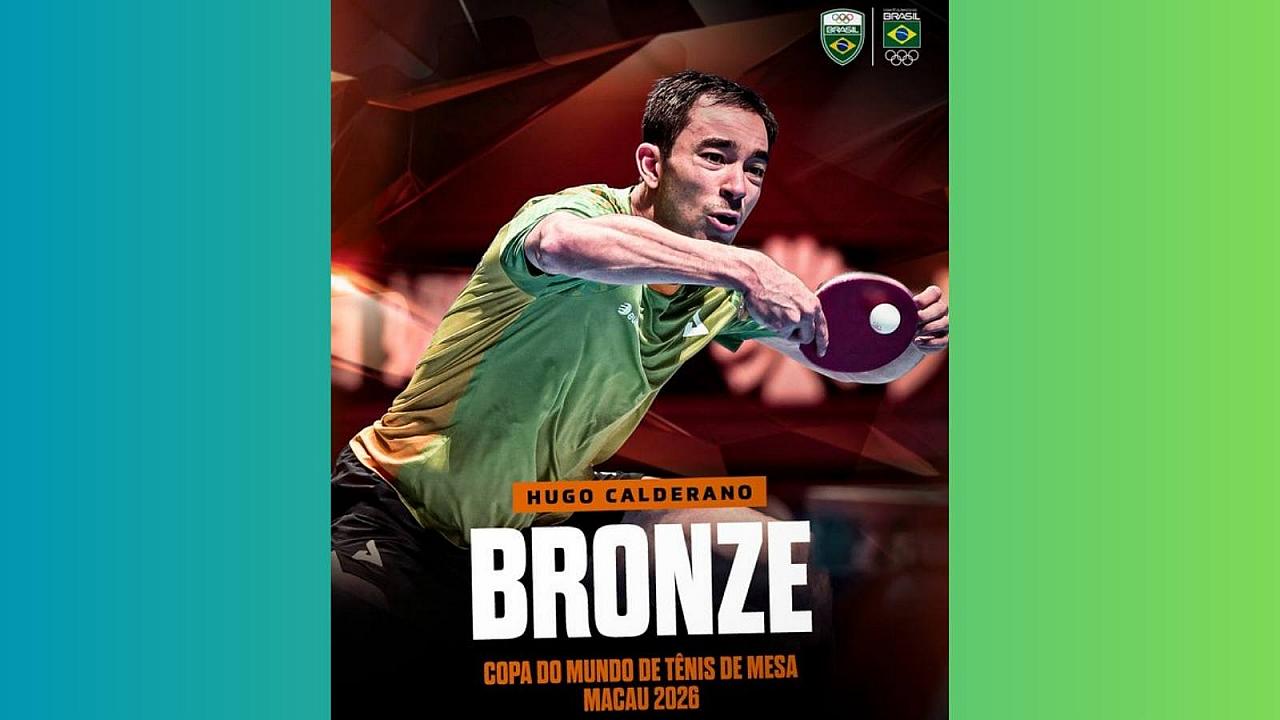 O brasileiro Hugo adiou o sonho do bicampeonato consecutivo e encerrou com medalha de bronze a Copa do Mundo de tênis de mesa em Macau (China). Neste domingo ( 5 ), o carioca número 3 do mundo foi superado nas semifinais pelo chinês Wang Chuqin, líder do ranking e atual campeão mundial. O anfitrião levou a melhor por 4 sets a 1 (parciais de 11/7, 11/3, 11/7, 6/11 e 12/10), quase um ano após amargar o vice-campeonato na edição passada, quando foi derrotado por Calderano na final.