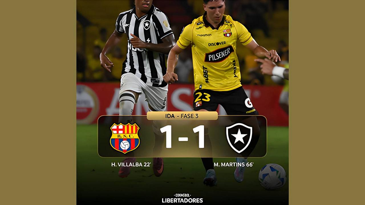 O Botafogo arrancou um empate de 1 a 1 com o Barcelona de Guayaquil (Equador), na noite desta terça-feira ( 3 ) no estádio Monumental de Guayaquil, na partida de ida da terceira fase prévia da Copa Libertadores da América, a primeira antes da fase de grupos.